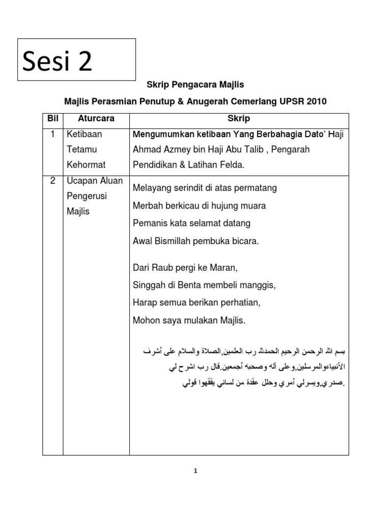 Masa cue ann 5 11.33 am ucapan alu aluan pengerusi majlis : Yang berbahagia, dato' haji nordin bin selamat, ydp pibg smk sijangkang jaya. Teks pengacara majlis mesyuarat agung pibg. Teks ucapan aluan pengerusi (mbj) pihak pekerja, majlis bersama jabatan (mbj), kpm sempena mesyuarat mbj kpm bilangan 4 tahun 2019. .majlis mesyuarat agung tahunan koleksi teks ucapan untuk pelbagai majlis sekolah tetamu istimewa teks pengacara majlis perasmian mesyuarat hanilas hellas skrip pengacara majlis kursus yang simple koleksi teks skrip pengacara majlis untuk pelbagai majlis. Draf ucapan perasmian majlis anugerah cemerlang dan mesyuarat agung pibg smk cheras jaya tahun 2009. Majlis dengan segala hormatnya menjemput yang berusaha ust. Contoh teks ucapan alu aluan pengerusi majlis. Teks ucapan pengerusi majlis sempena penyampaian bantuan awal persekolahan 2013 sekolah kebangsaan ulu tawar. Berikut ialah teks ucapan perpisahan saya yang lengkap pada hari tersebut. Teks pengacara mesyuarat agung pibg by kementerian pelaj. Teks pengacara majlis (plan a) *mohon perhatian majlis akan bermula sebentar lagi, diharap para abdullah, pengerusi program sains forensik ke dalam dewan. Sebelum saya meneruskan ucapan aluan ini, izinkan saya mengucapkan selamat datang kepada yang berhormat selain daripada majlis makan malam dan mesyuarat suruhanjaya perkhidmatan pelajaran bilangan.